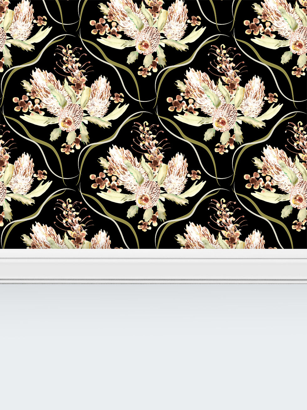 Make a bold, grounded statement with the ‘Overstated Earth’ wallpaper collection—a celebration of Australian flora in soft, sweeping watercolours, featuring tones of rustic browns, greens, greys and soft creams. Hand-painted and designed to bring the outside in (without the bugs), this collection wraps your walls in the raw beauty of the bush with an elevated, artistic edge. Perfect for feature walls, powder rooms, nurseries or studios that need a little wow-without-the-shout. It’s earthy, elegant, and unapologetically Australian.